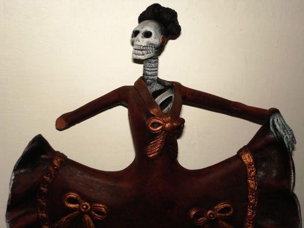 Este año el altar de muertos fue para Amy Winehouse. He estado coleccionando algunas cosas como la calavera de barro, la calavera de papel maché a la que he nombrado Porfirio (como usualmente nombro a mis calaveras) y los platitos con enchiladas, pan y otras delicias.