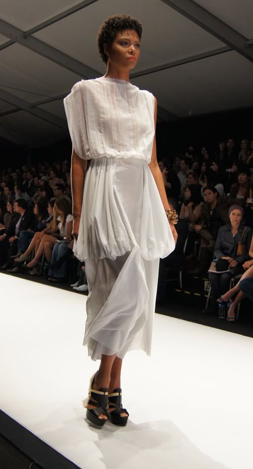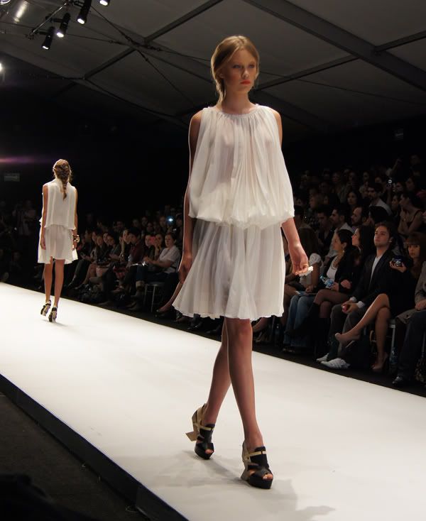 Una de las mejores presentaciones desde mi punto de vista fue la de CENTRO, me pareció muy congruente a pesar de haber sido construida entre un grupo, llegar a la congruencia para algunos diseñadores parece ser algo difícil cuando es uno sólo. Si el futuro de la moda en México esta en las manos de esos niños entonces tengo fe. No tengo fotos, no tengo fotos buenas en general de los desfiles gracias a los pésimos lugares donde siempre me tocaba a pesar de ser prensa.